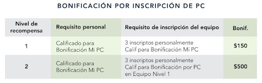 Este bono lo recompensa por construir una red de asociados y duplicar el comportamiento de creación de negocios de inscribir nuevas PC. Dado que esto implica que varios miembros de su equipo completen ciertas acciones, es naturalmente un poco más complicado que el Bono de MiPC, pero estos son los conceptos básicos que debe saber.