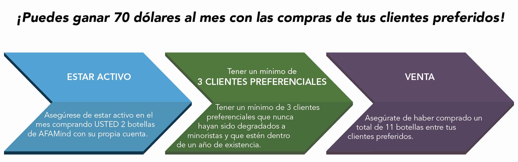 - Asegúrese de estar activo en el mes comprando USTED 2 botellas de AFAMind con su propia cuenta.