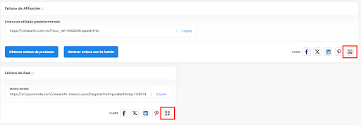 3. En la parte inferior de esta sección, busca el botón con el icono del Código QR (como verás abajo). Dale clic a este botón y abre el Código QR de tu enlace.